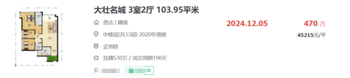 而大壮名城的二手房价格较去年年底也有明显回落。